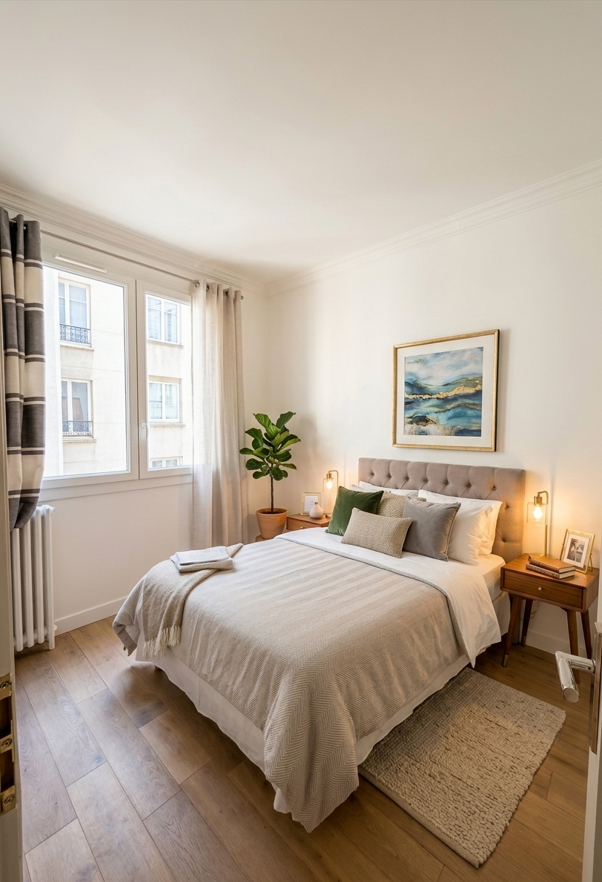 - L'espace nuit : Une chambre attenante de 8 m² (également plein Sud) disposant d'une penderie et de rangements optimisés.