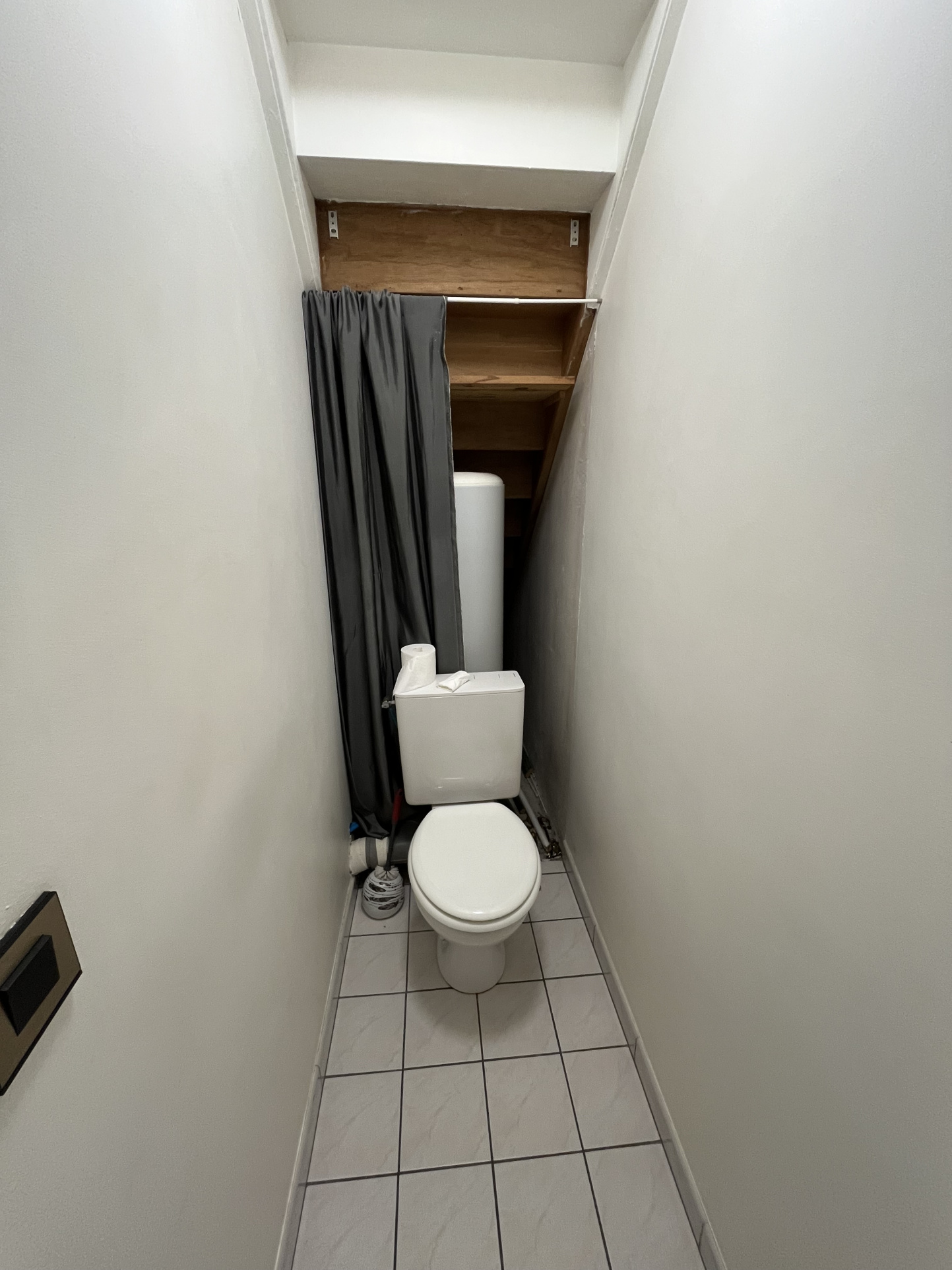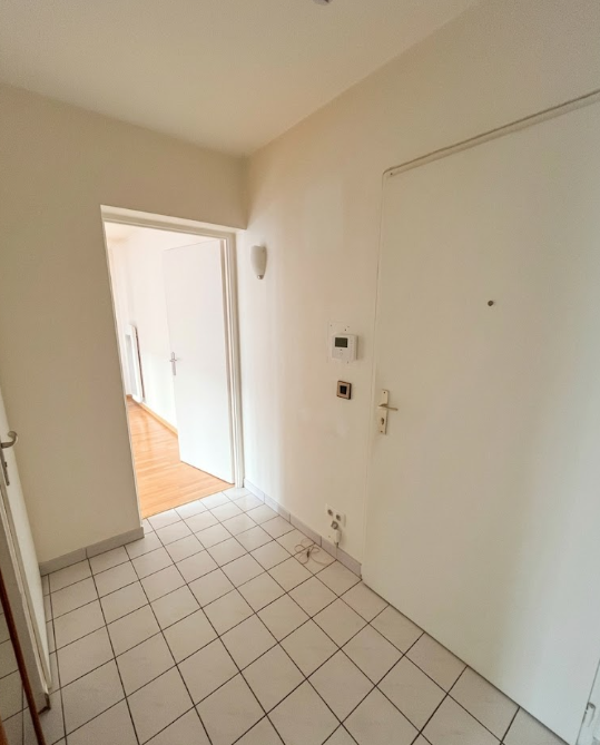 Une entrée avec placards, une cuisine séparée avec rangements, une pièce à vivre lumineuse, ainsi qu’un WC indépendant.